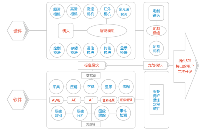客户需求的多样化决定了图像应用的多样化。智能图像系统可以裁剪标准化的软、硬件模块,同时添加客户的具体软、硬件需求。